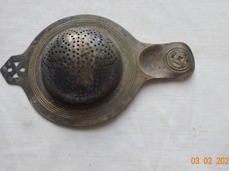 Старинное ситечко , металл позолоченный. Клеймо WMF со страусом в ромбе