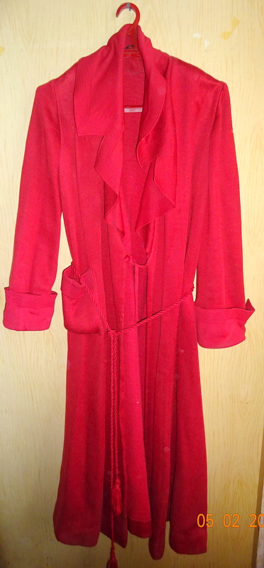 Халат был сшит в середине 50-х годов в самом модном ленинградском ателье на Невском,12, которое в народе носило название "Смерть мужьям". Иметь такой халат мечтала каждая женщина в СССР. Помимо того, что халат стоил очень дорого, необходимо было отстоять многомесячную очередь, постоянно отмечаясь в списках и иметь для заказа ленинградскую прописку.